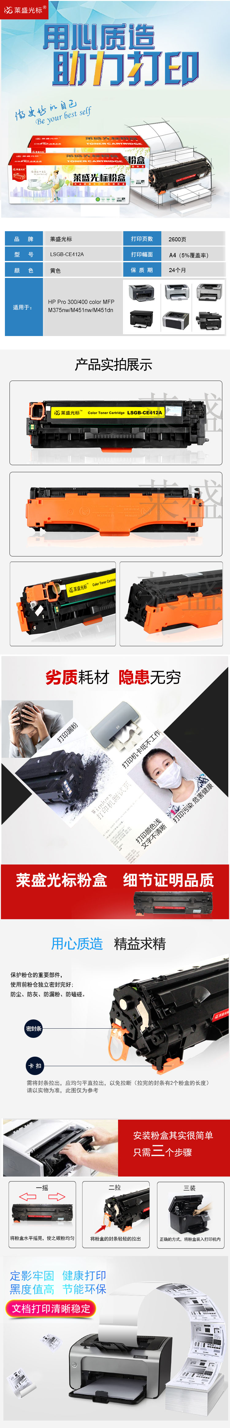莱盛光标 LSGB-CE412A 约2600页 适用于HP M351a 硒鼓 1.00 只/支 (计价单位:支) 黄色