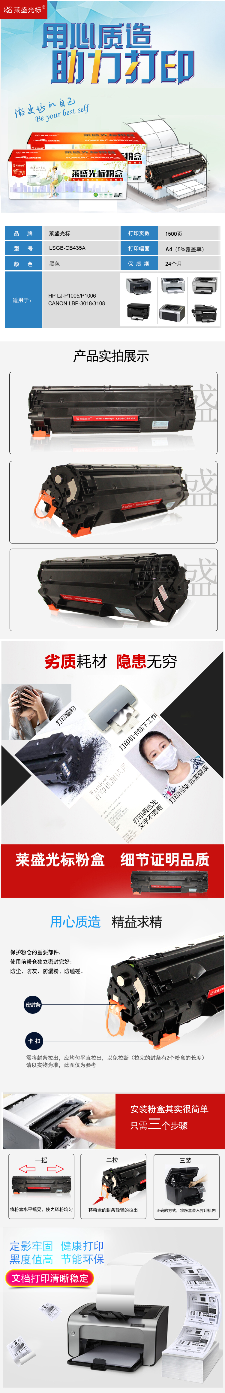 莱盛光标 LSGB-CB435A 约1500页 适用HP LJ-P1005/P1006等 硒鼓 1.00 只/支 (计价单位:支) 黑色