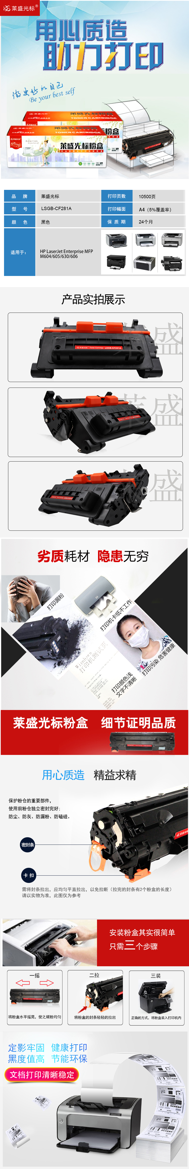 莱盛光标 LSGB-CF281A 打印量10500 适用HP LJ-M604dn/M605/M606 粉盒 1.00 只/支 (计价单位:支) 黑