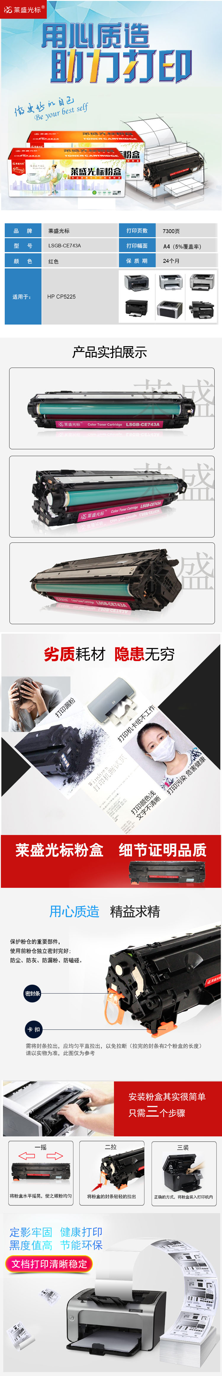 莱盛光标 LSGB-CE743A 约7300页 适用于HP CP5225 硒鼓 1.00 只/支 (计价单位:支) 红色