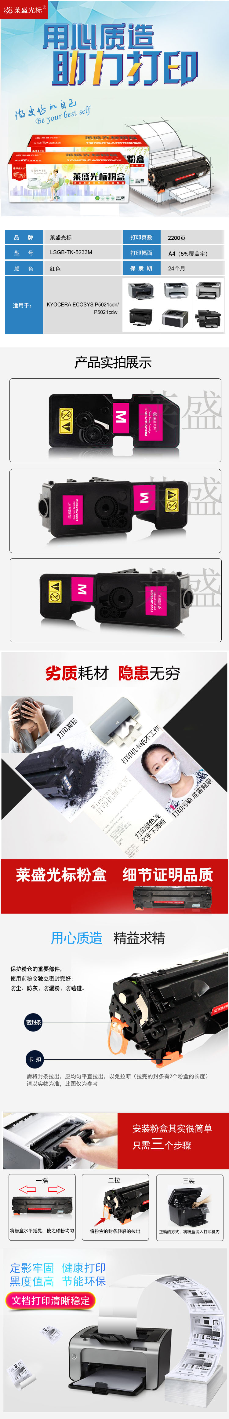 莱盛光标 LSGB-TK-5233M 激光打印机粉仓 全新 有芯片 2.2K 60支/箱 红色