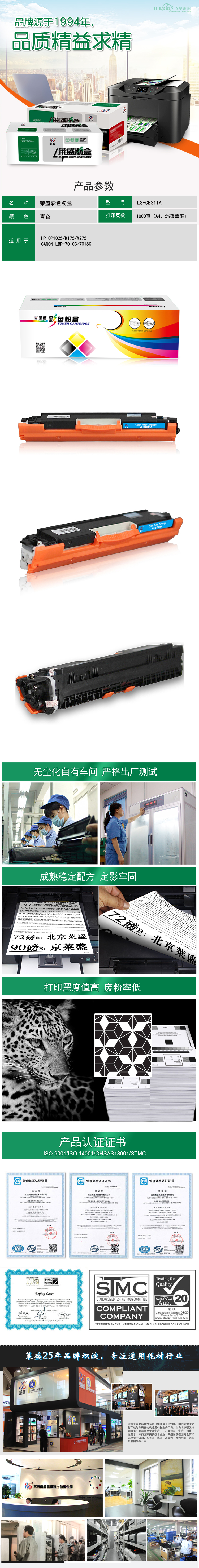 莱盛(laser) LS-CE311A 1000页 适用于惠普 CP1025/CP1025nw 墨粉盒 (计价单位:只) 蓝色