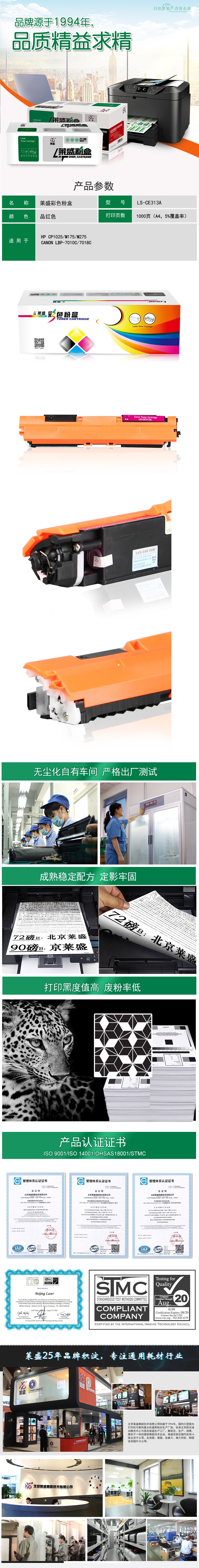 莱盛(laser) LS-CE313A 1000页 适用于惠普 CP1025/CP1025nw 墨粉盒 1.00 只/支 (计价单位:支) 红色