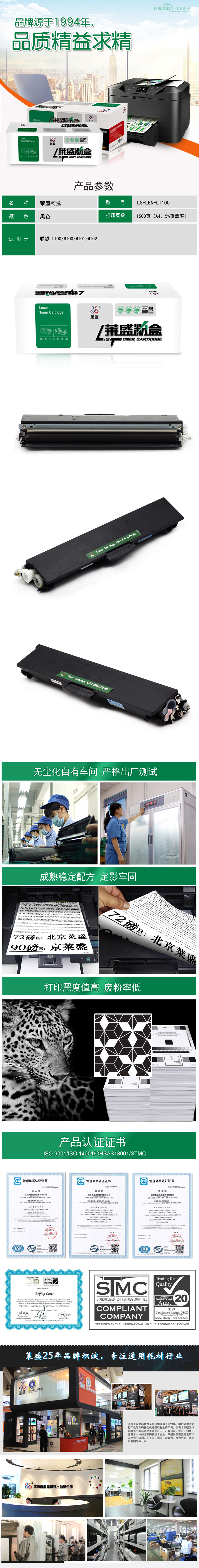 莱盛 LS-LEN-LT100 粉仓 全新 无芯片 1.5K 16支/箱 黑色
