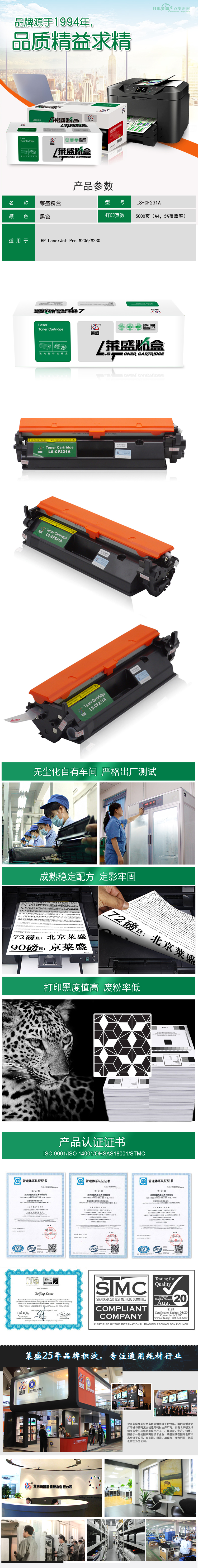 莱盛 LS-CF231A 粉仓 全新 有芯片 5K 20支/箱 黑色
