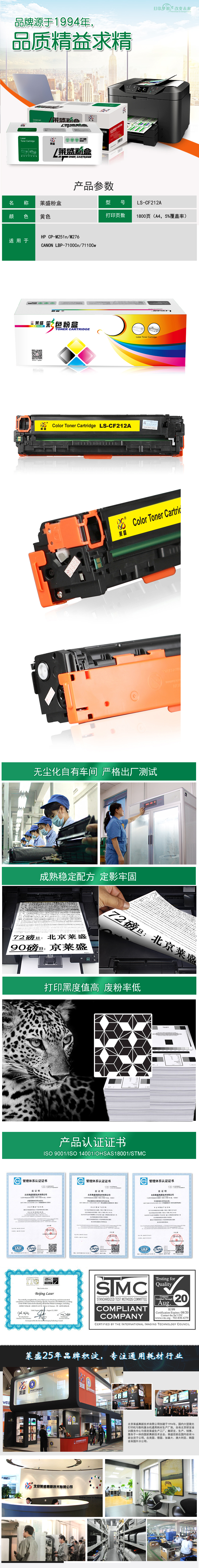 莱盛(laser) LS-CF212A 1800页 适用于 HP CP-M251n/M276,CANON LBP-7100Cn/7110Cw 硒鼓/粉盒 (计价单位:只) 黄色