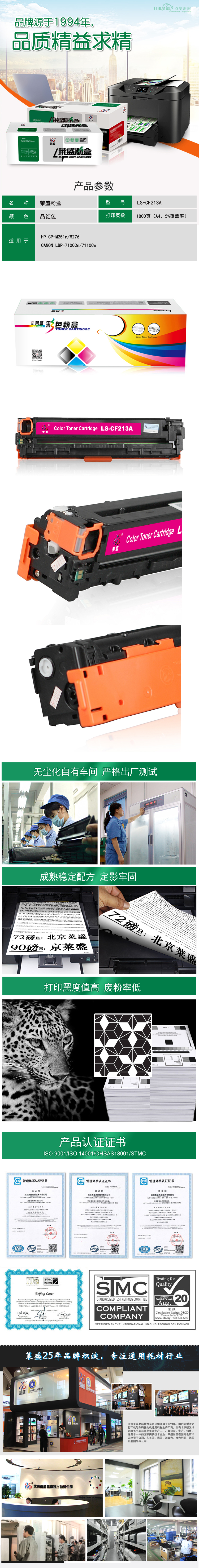 莱盛(laser) LS-CF213A 1800页 适用于 HP CP-M251n/M276,CANON LBP-7100Cn/7110Cw 硒鼓/粉盒 (计价单位:只) 红色