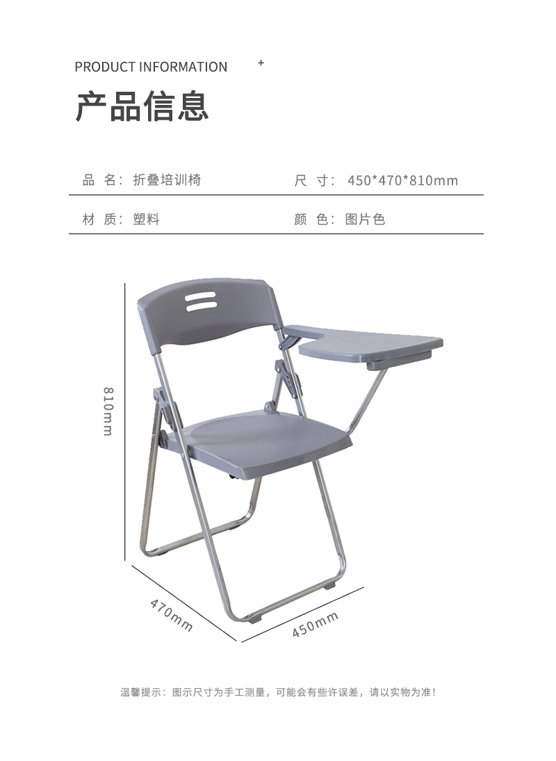 企诺 会议椅折叠培训椅带写字板靠背椅职员椅 BGY-148 灰色