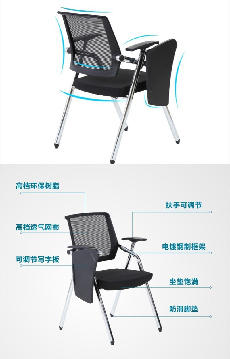企诺 培训椅带写字板一体会议带桌板椅子 BGY-156 黑色