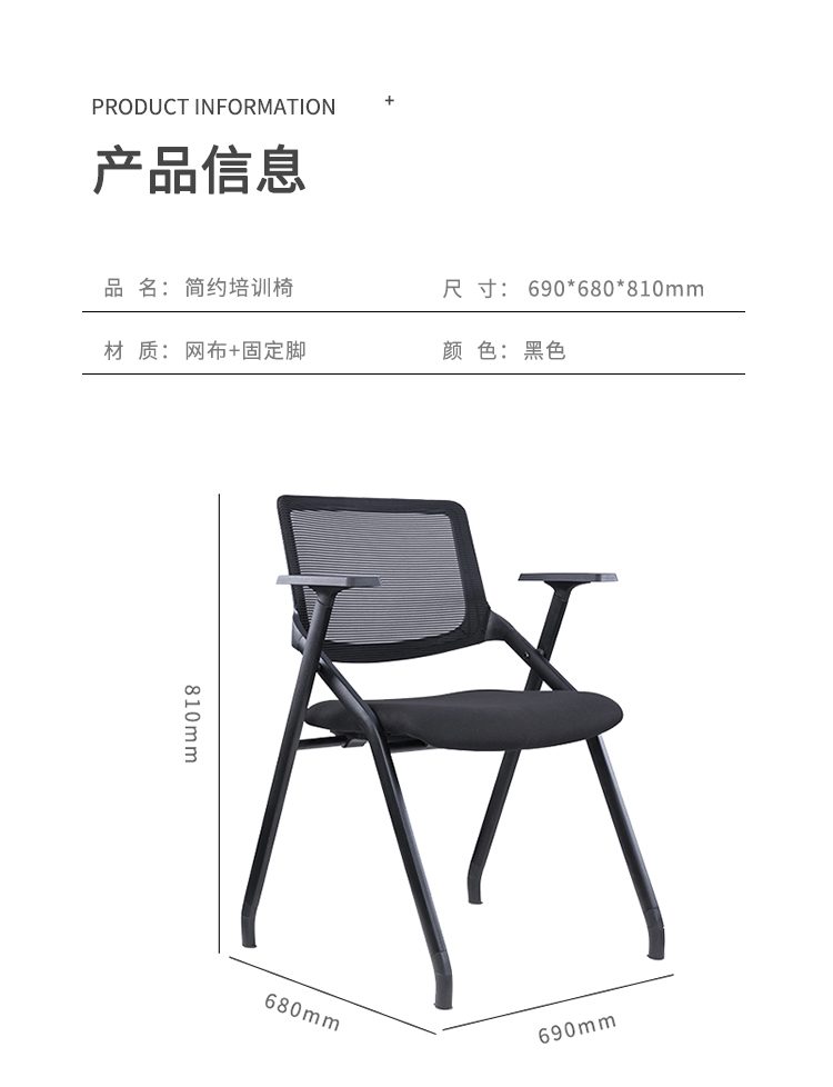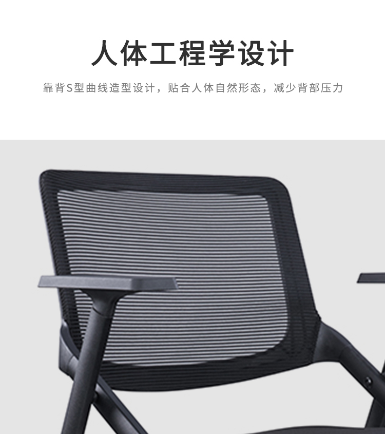 企诺 固定脚培训椅会议椅职员椅办公室洽谈椅带写字板黑色不带写字板 BGY-163 黑色