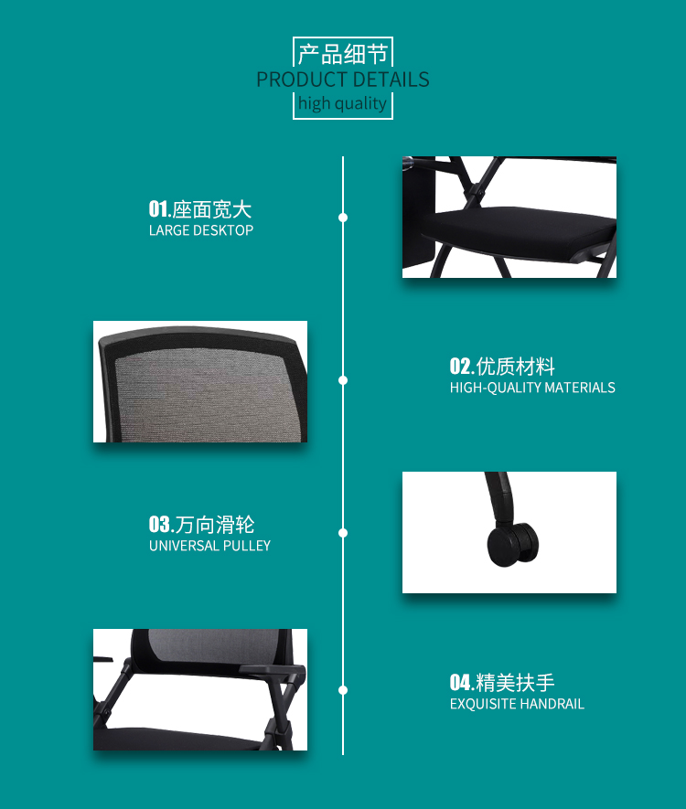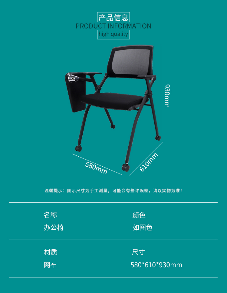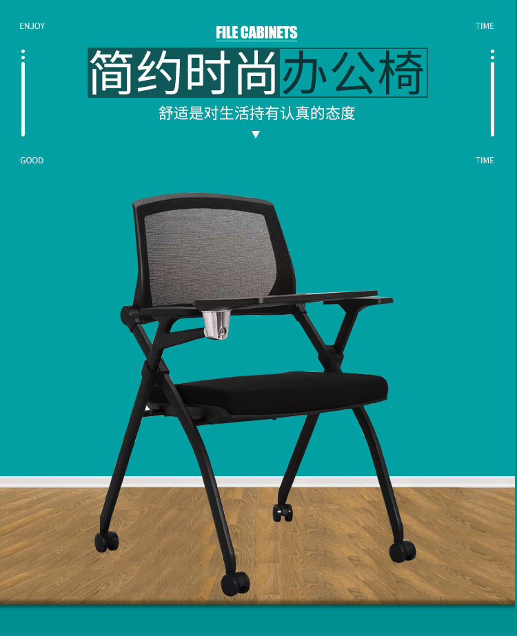 企诺 带写字板培训椅可移动会议椅 BGY-167 黑色
