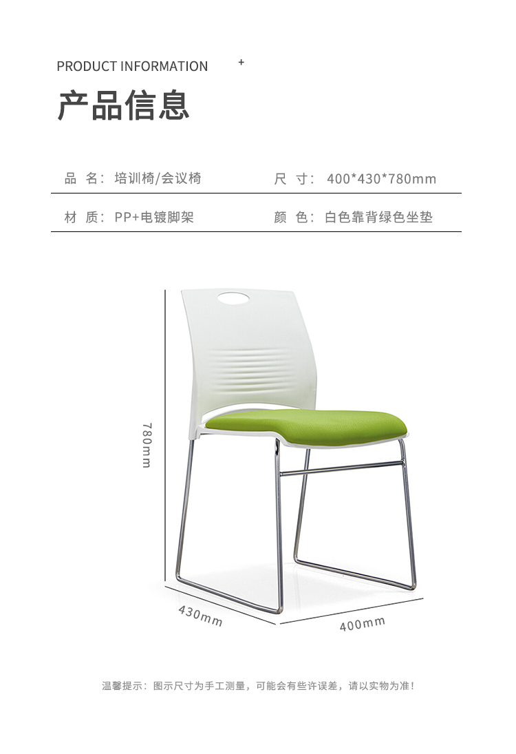 企诺 培训椅接待椅电脑椅白色靠背椅员工办公椅 BGY-170 绿色