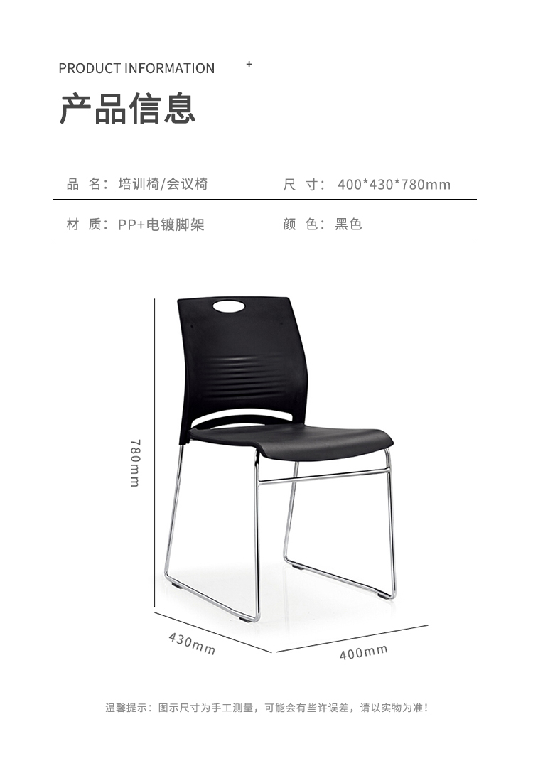 企诺 简约接待椅一体成型椅员工靠背椅电脑椅培训椅 BGY-172 黑色