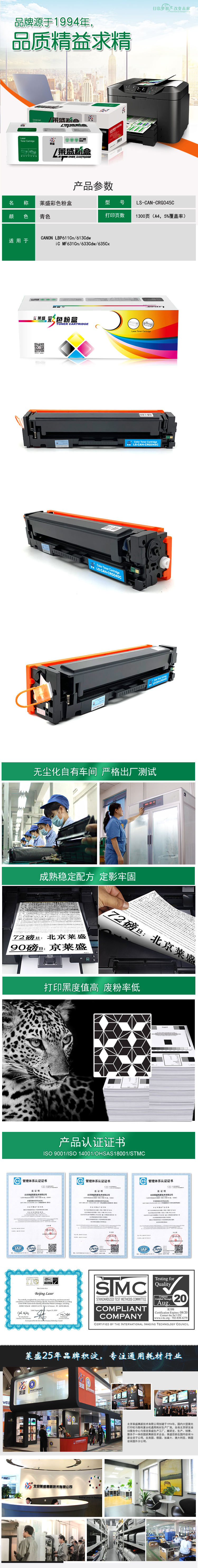 莱盛 LS-CAN-CRG045C 彩色激光打印机粉盒 全新 有芯片 1.3K 20支/箱 青色