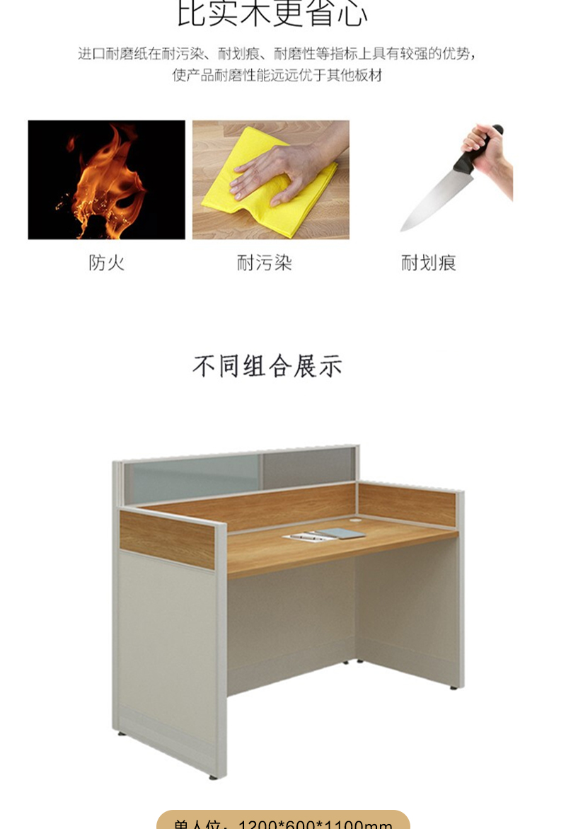 企诺 现代简约电脑桌办公桌屏风卡位单人位 QND2bYP-Z1206OX 原木色