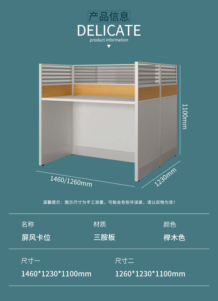 企诺 直形屏风卡位双人位 QND2bYP-Z1412J 榉木色