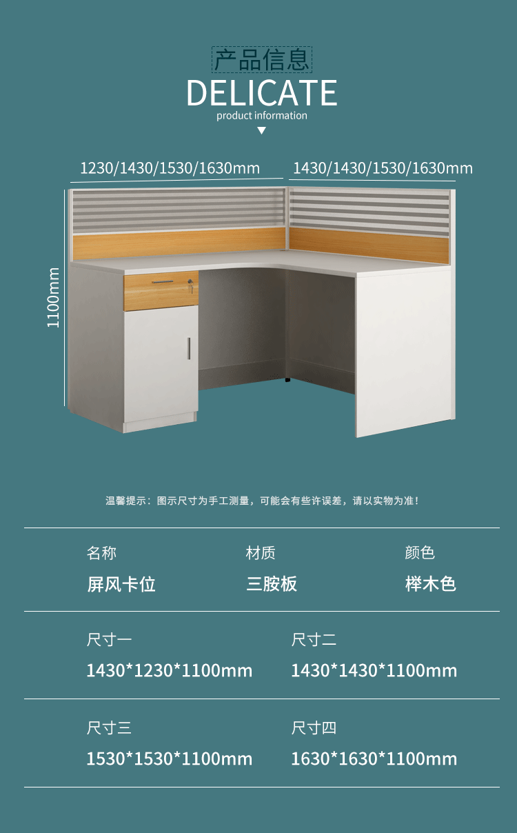 企诺 L形屏风卡位单人位 QND2bYP-L1414带柜J 榉木色