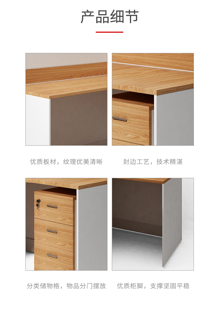 企诺 T型卡位工作台多人办公台组合双人位 QND2bYP-L2812带柜OX 榉木色