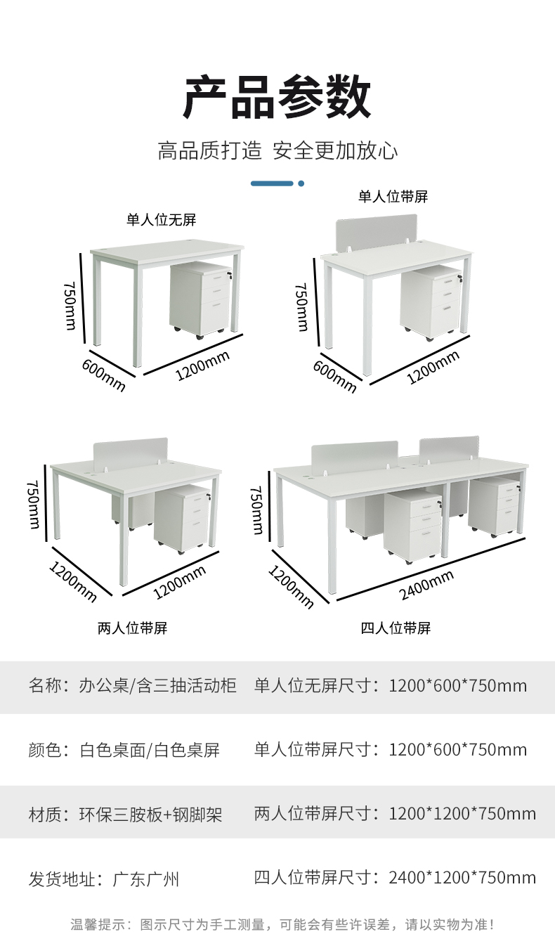 企诺 职员办公桌屏风工位电脑桌屏风隔断卡位 2人位含柜 QND2cYP-F1212W 白色