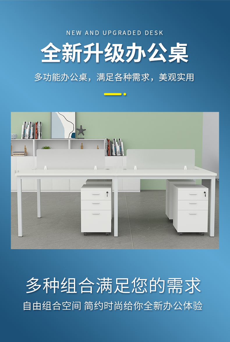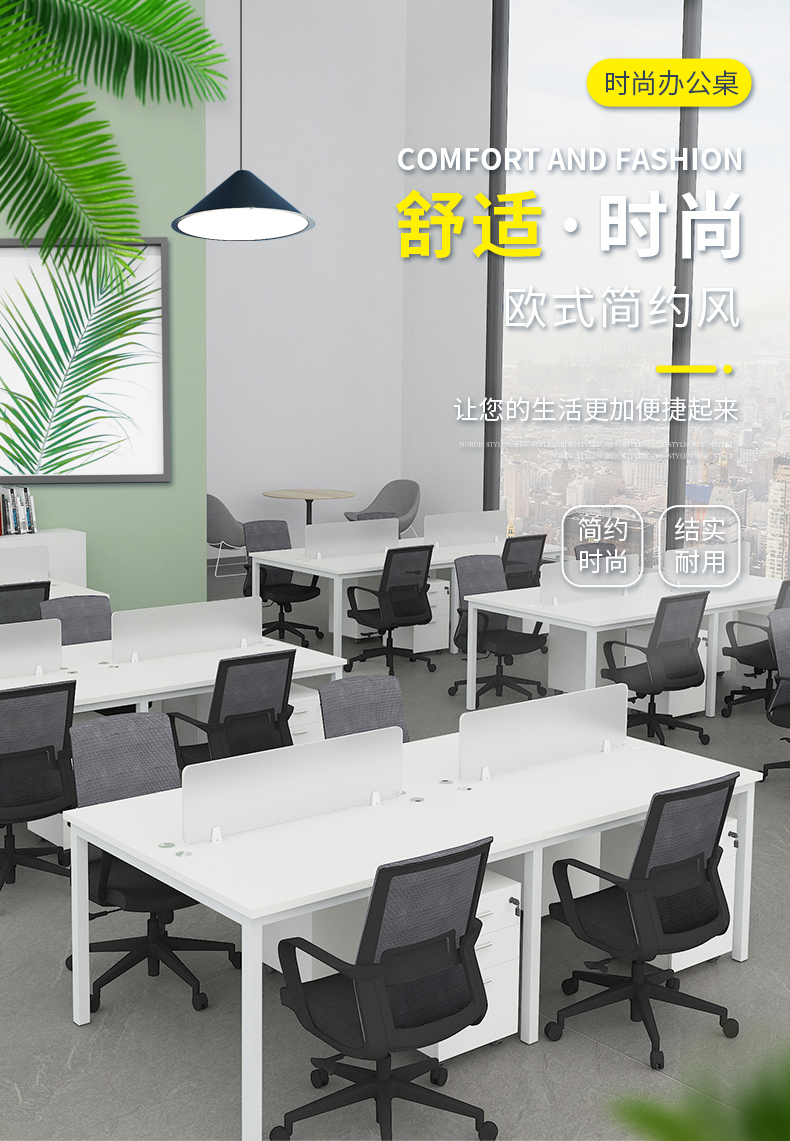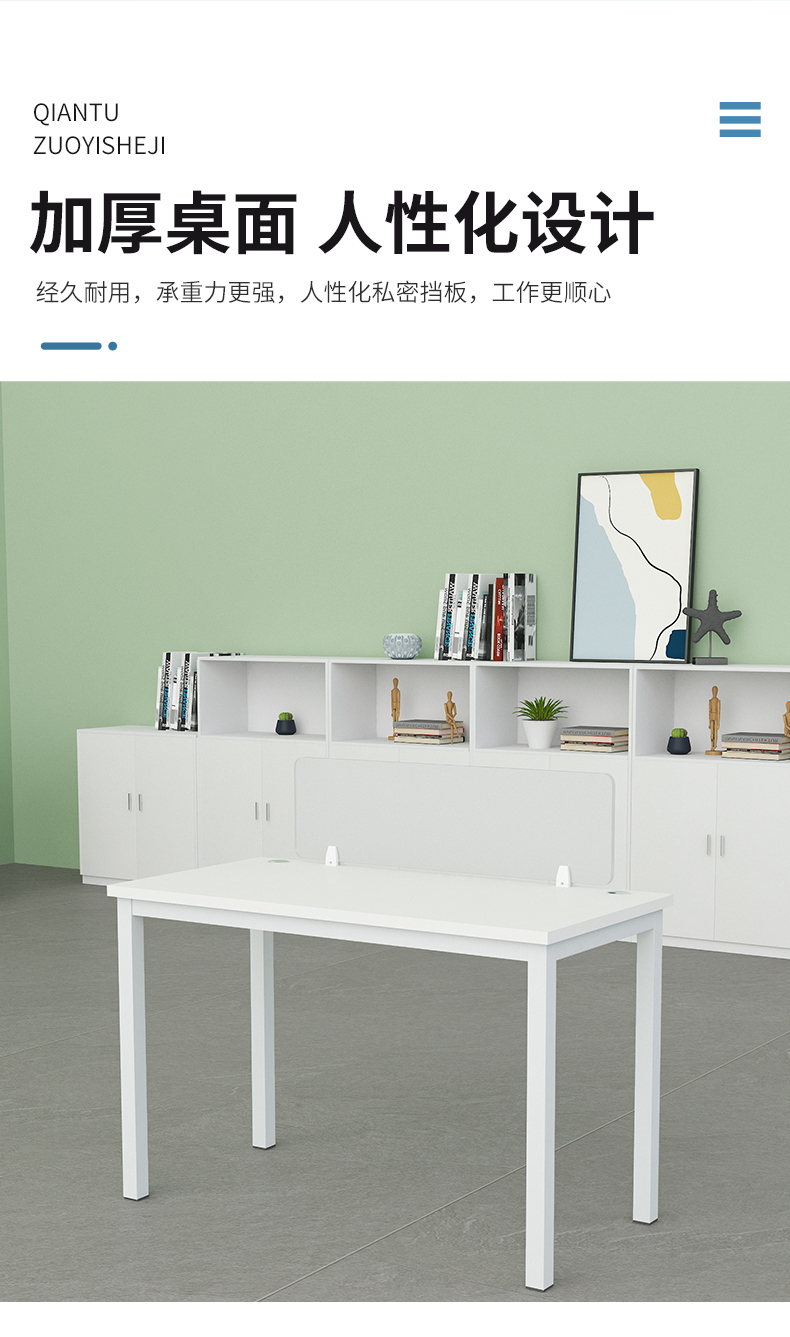 企诺 职员办公桌屏风工位电脑桌屏风隔断卡位 4人位含柜 QND2cYP-F2412W 白色