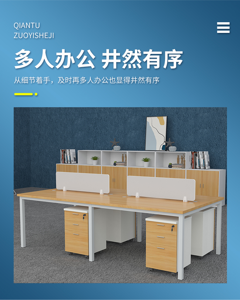 企诺 办公桌职员工位屏风隔断卡位电脑桌 单人位无屏 QND2cYP-F1206无屏HX 泛美黄橡