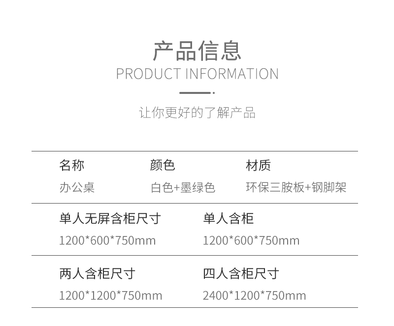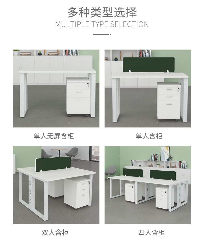 企诺 屏风办公桌职员桌电脑桌隔断卡座 单人位无屏含柜 QND2cYP-R1206无屏WGr 白色