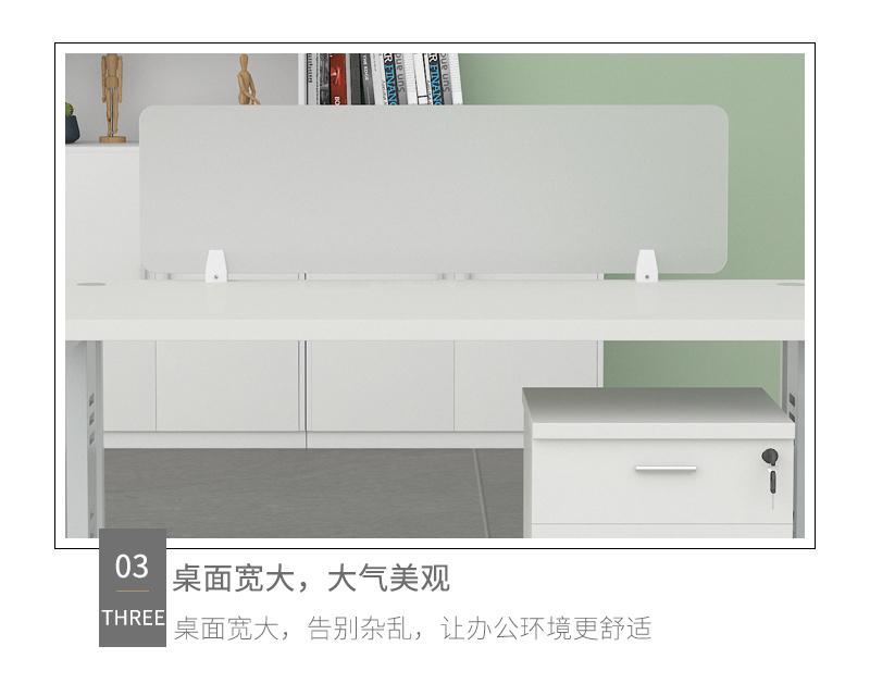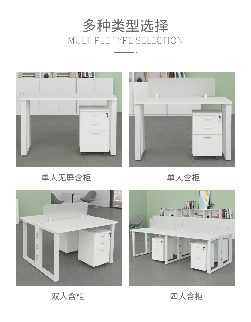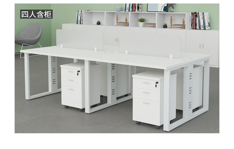 企诺 办公室职员桌现代简约员工桌电脑桌屏风办公桌 2人位含柜 QND2cYP-R1212W 白亚克力