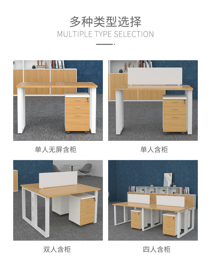 企诺 屏风办公桌职员桌办公室电脑桌隔断工位 单人位含柜 QND2cYP-R1206HX 泛美黄橡