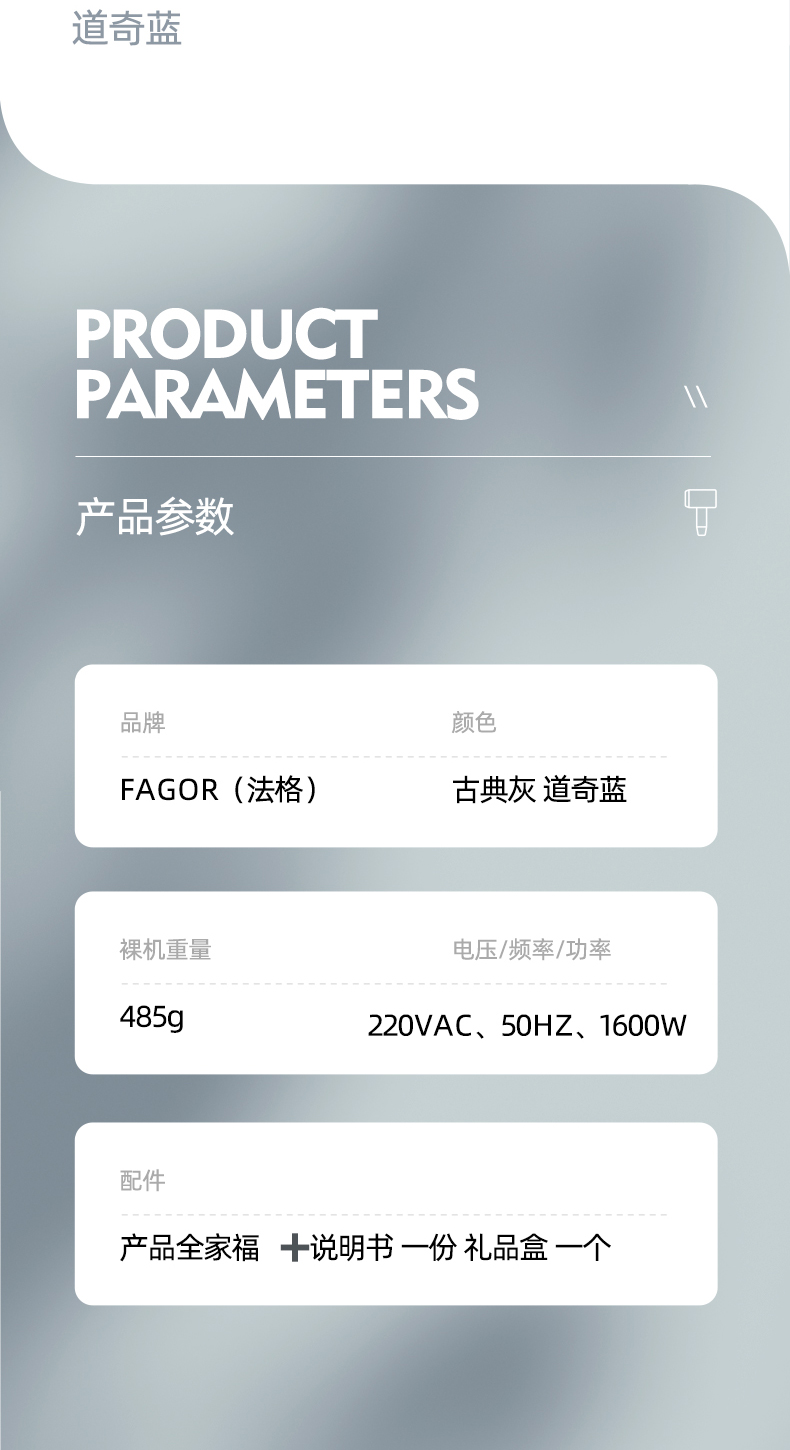 法格(FAGOR) 高速电吹风 1600W FG-P002B 极光蓝