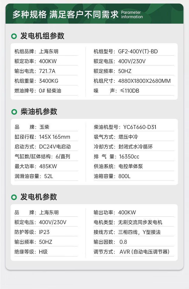 东明DONMIN 400kw低噪音拖车型玉柴柴油发电机GF2-400Y(T)-BD/台 军绿色