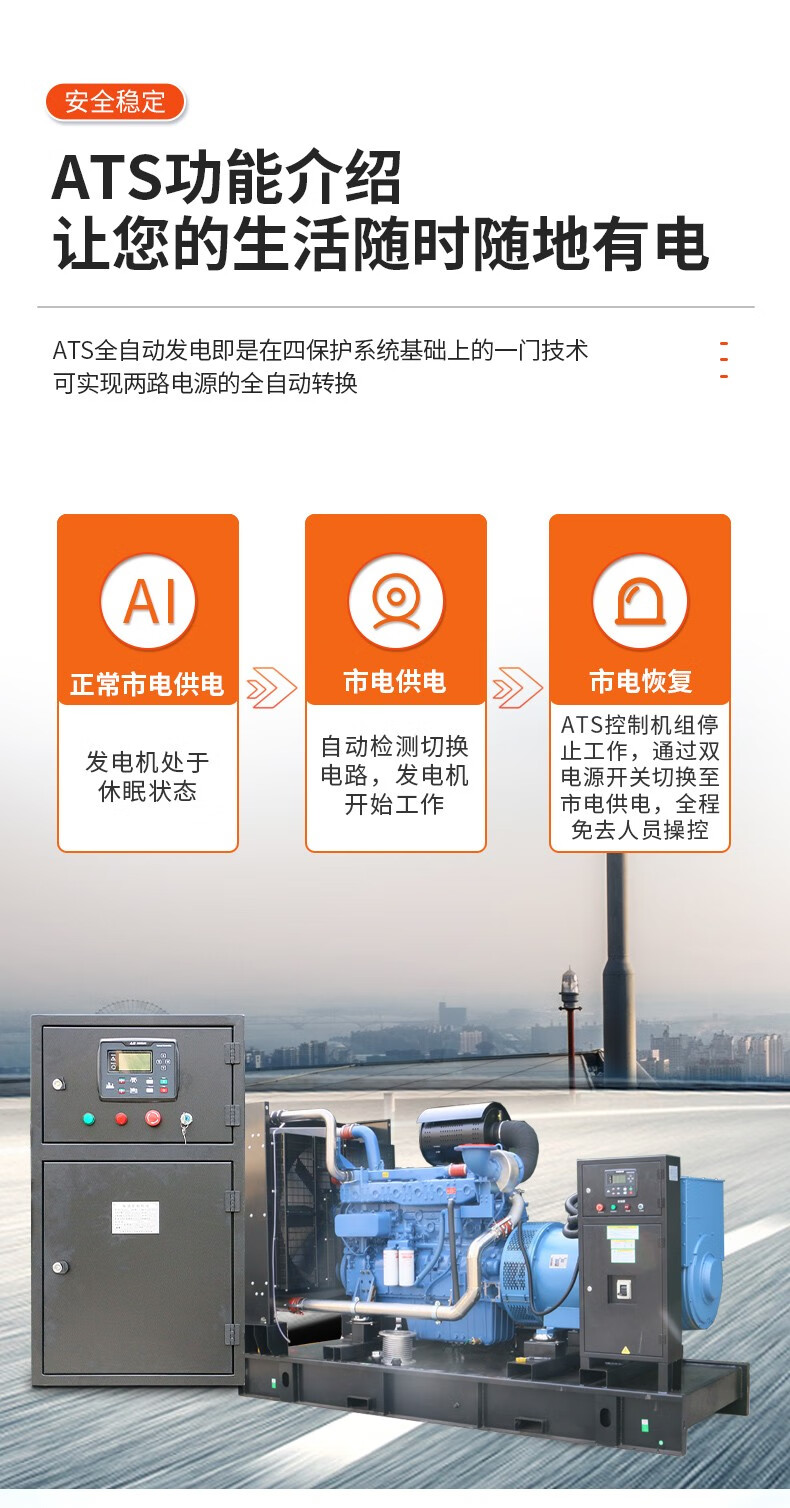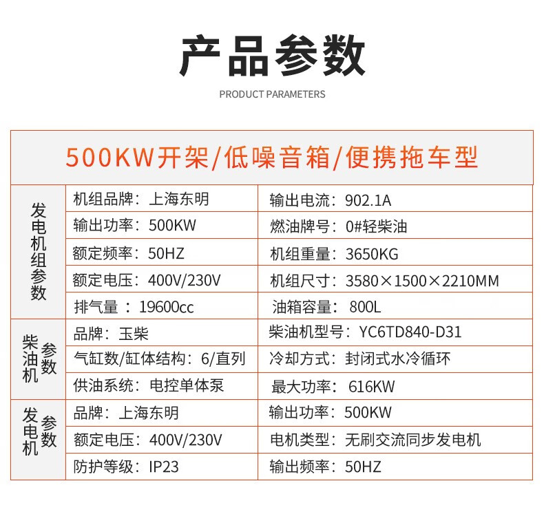 东明DONMIN 500kw开架式ATS无人值守型玉柴柴油发电机 GF-500Y(ATS)-1/台 黄色