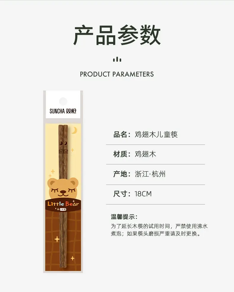 双枪鸡翅木儿童筷单双装*5袋 KZ2100 奶茶杏