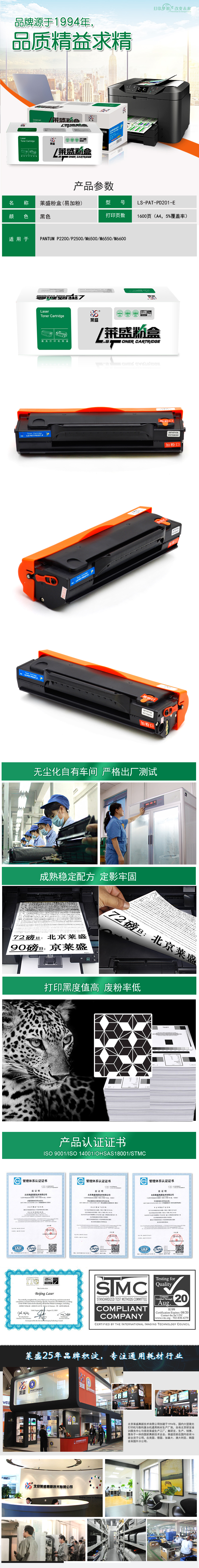 莱盛 LS-PAT-PD201-E 激光打印机粉盒易加粉 黑色 全新 有芯片 1.6K 黑色
