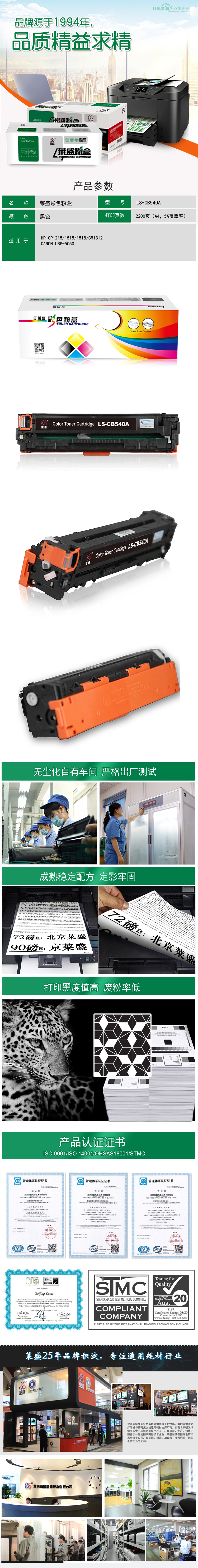 莱盛(laser) LS-CB540A 2200页 适用于 HP CP1215/1515/1518/CM1312,CANON LBP-5050 硒鼓/粉盒 (计价单位:只) 黑色