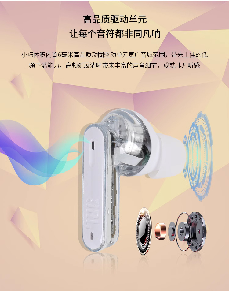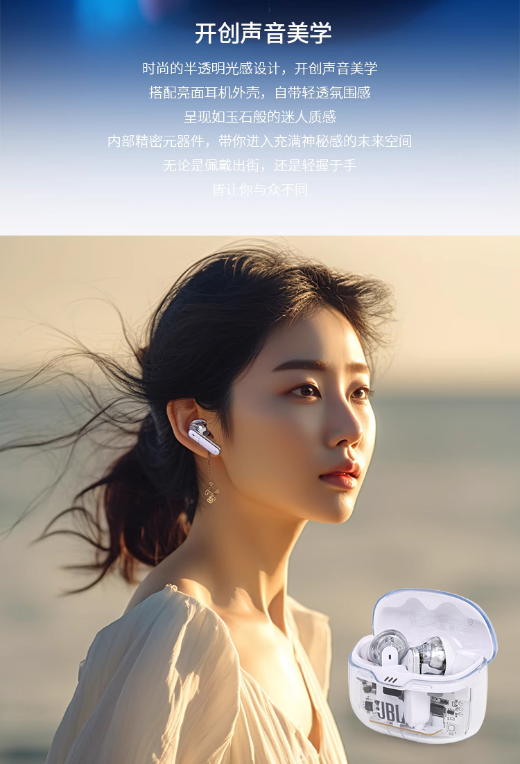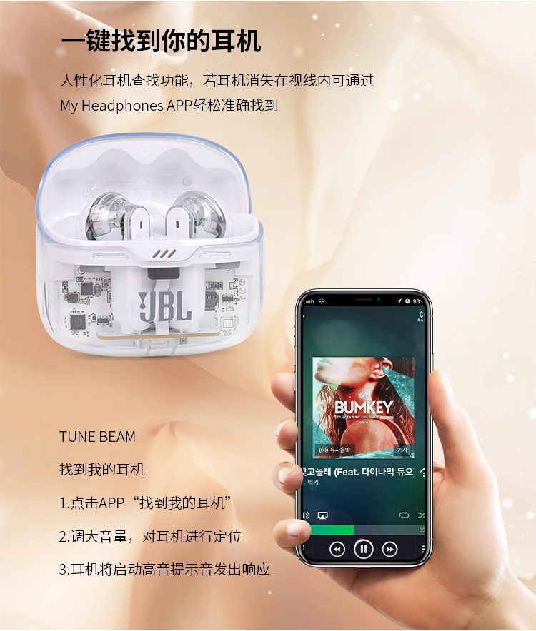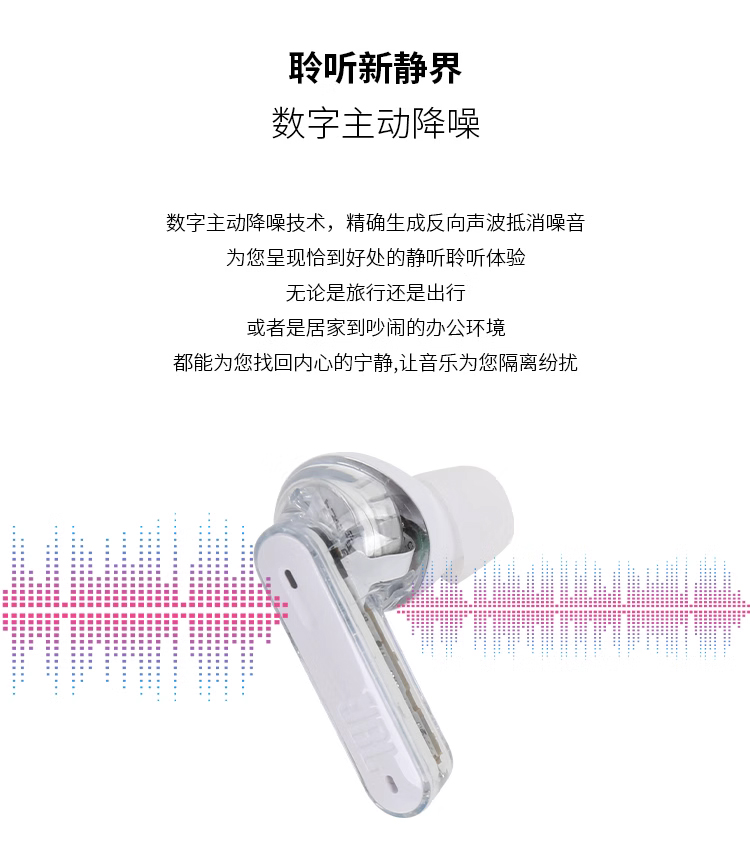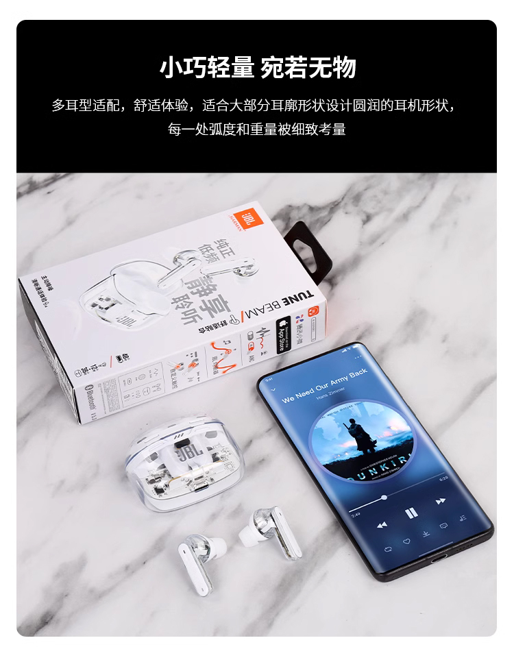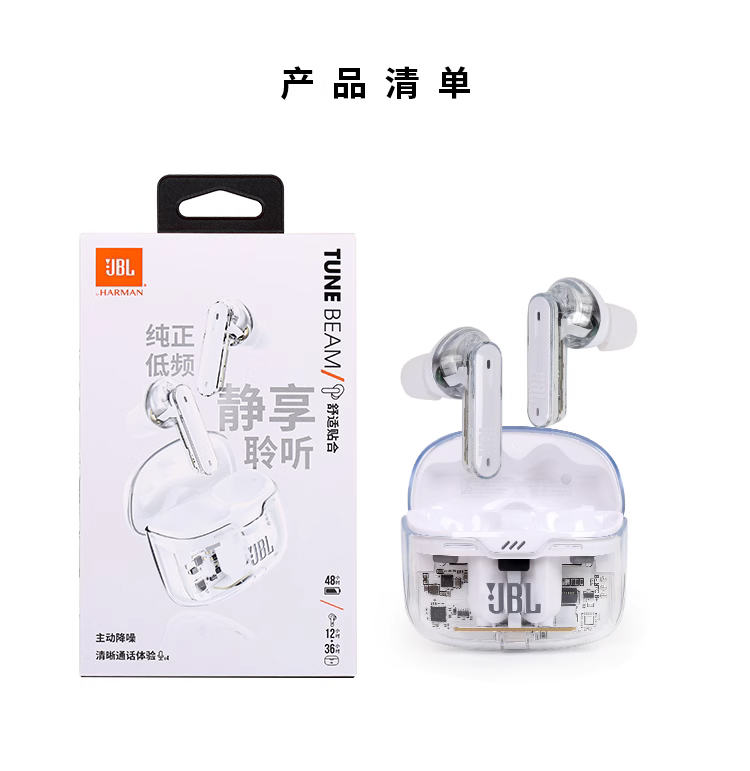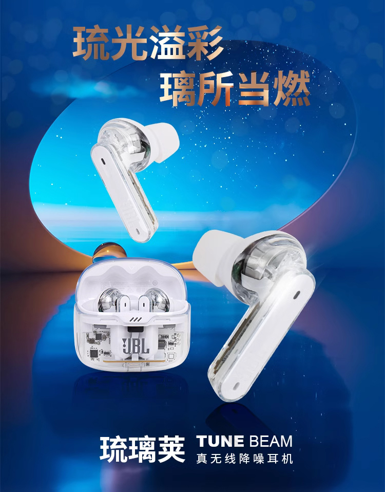 JBL TUNE BEAM 琉璃豆 主动降噪 真无线蓝牙耳机 纯正低频音效 白色