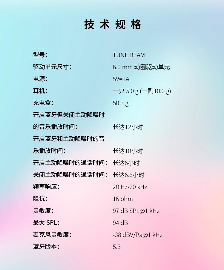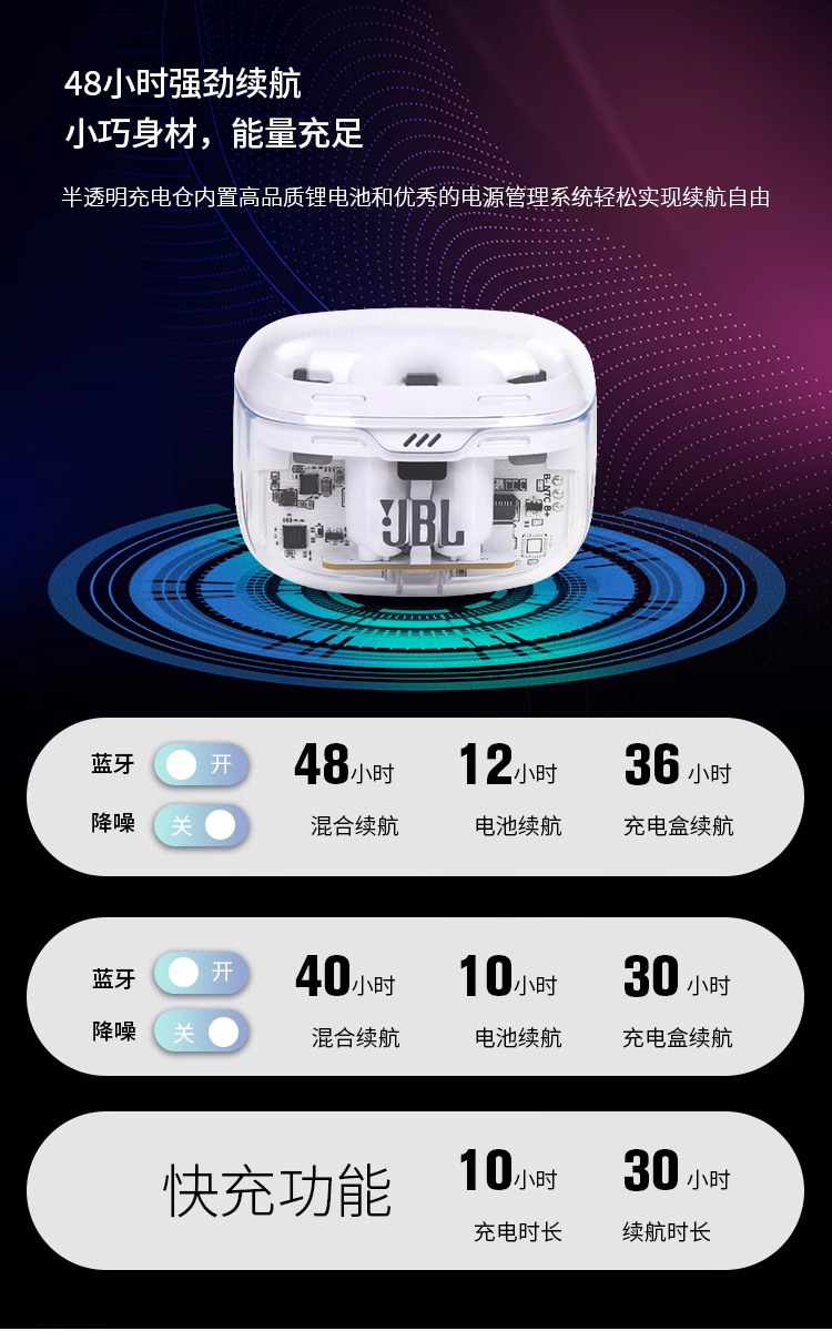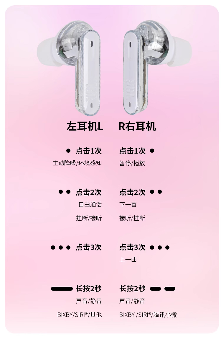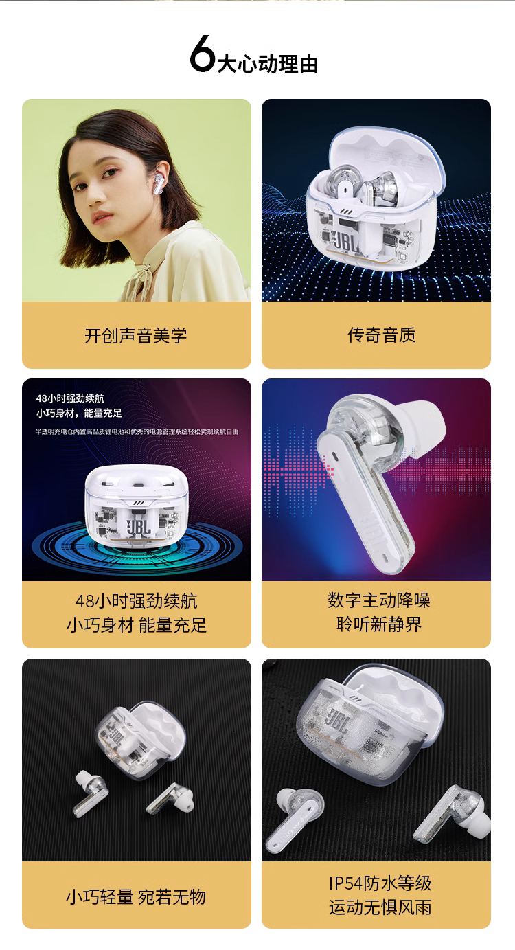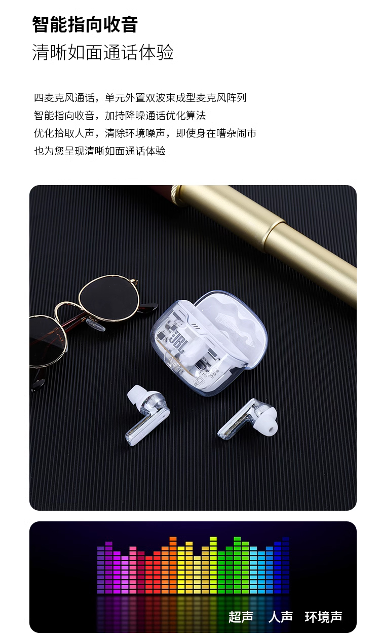 JBL TUNE BEAM 琉璃豆 主动降噪 真无线蓝牙耳机 纯正低频音效 白色