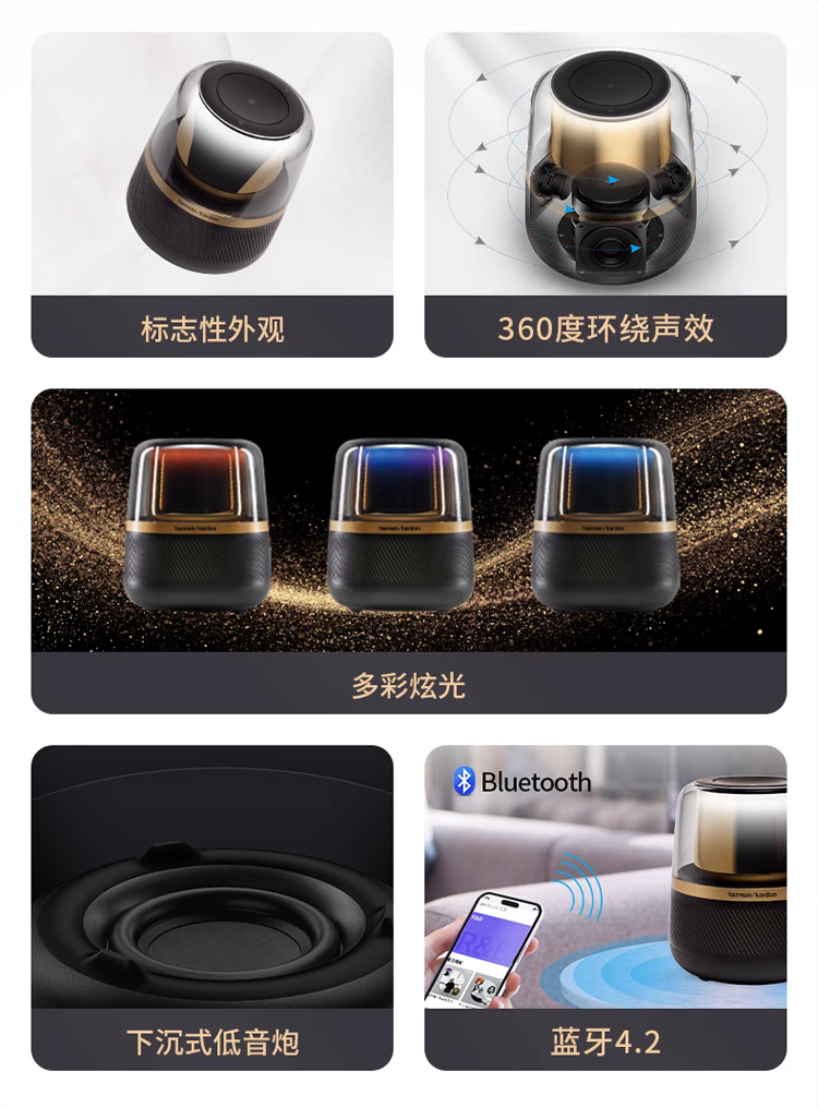 哈曼卡顿(Harman/Kardon)Allure Essential 音乐曜石桌面电脑蓝牙音箱 黑色