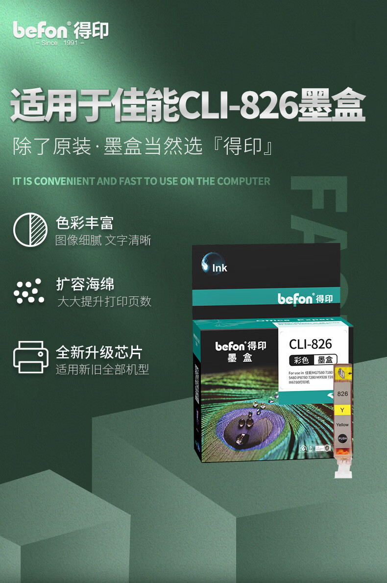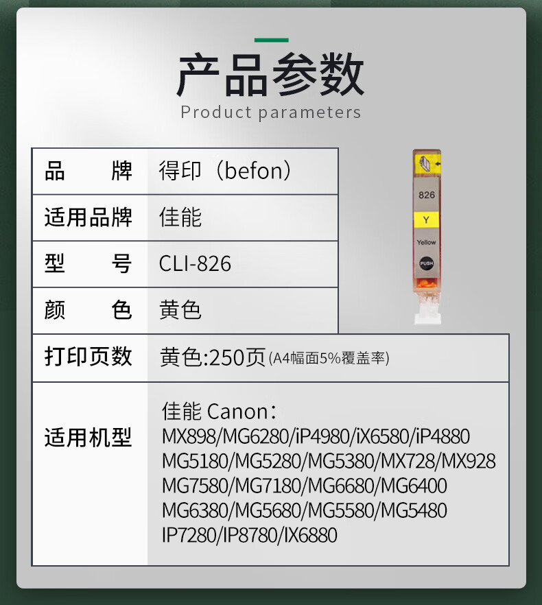 得印CLI-826墨盒黄大容量 适用佳能 MX898/MG6280/iP4980(单位:支)250页 黄色