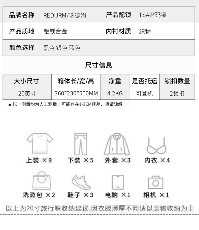瑞德姆铝镁合金拉杆箱RL-QLTA002(单位:个) 灰色 24寸