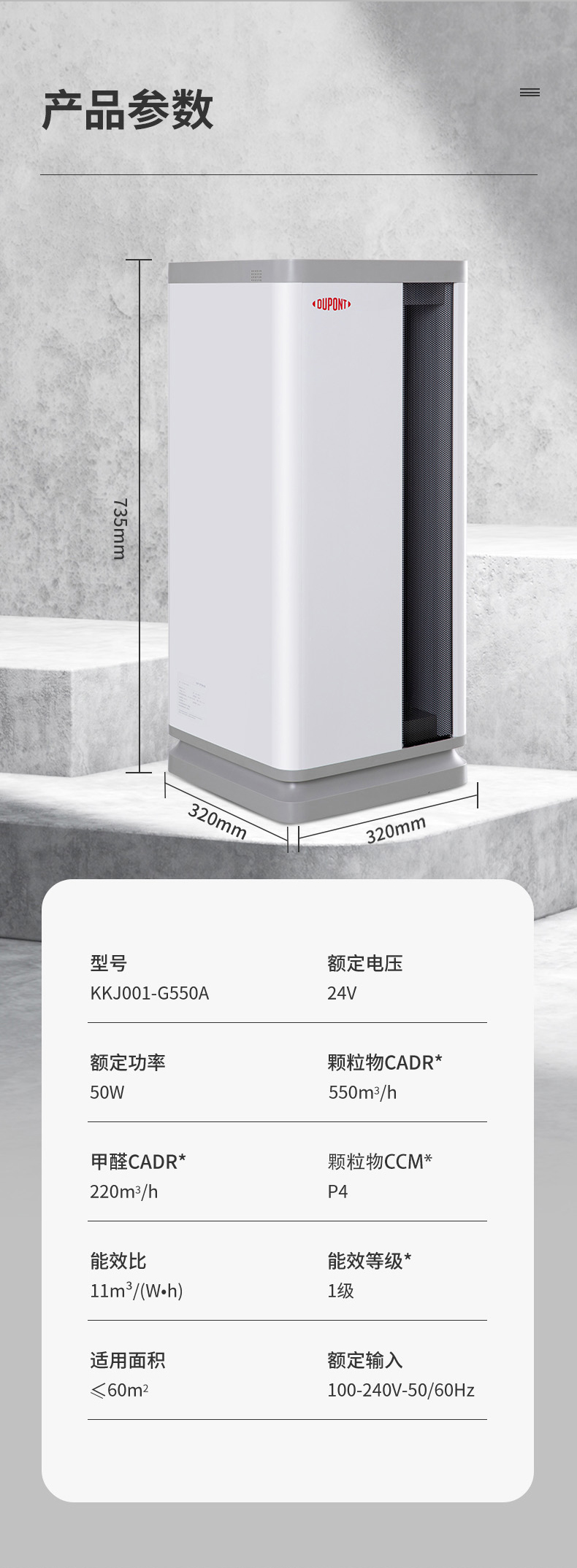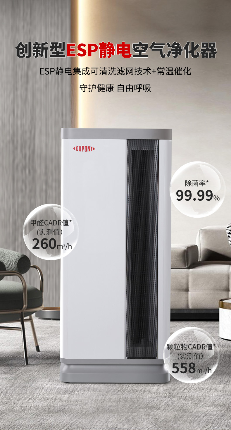 杜邦(DUPONT) KKJ001-G550A 空气净化器 适用面积:51-80㎡,(单位:台) 本白色
