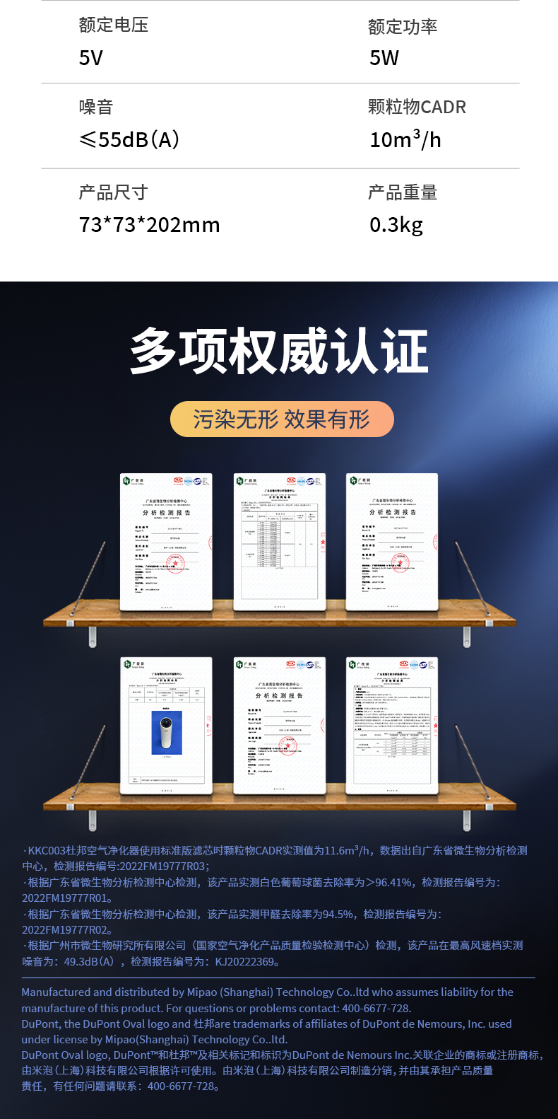 杜邦(DUPONT) KKC003空气净化器 适用面积:20㎡以下(单位:台) 本白色