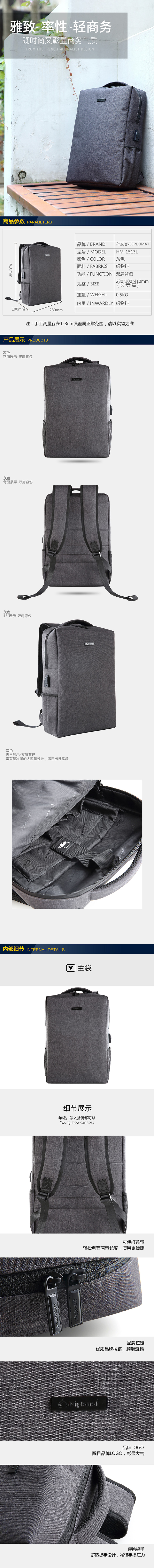 外交官双肩包-灰色HM-1513L(单位:套) 灰色