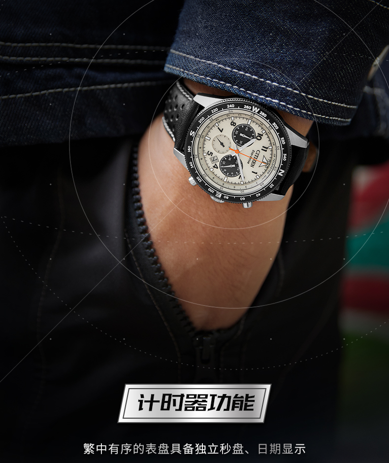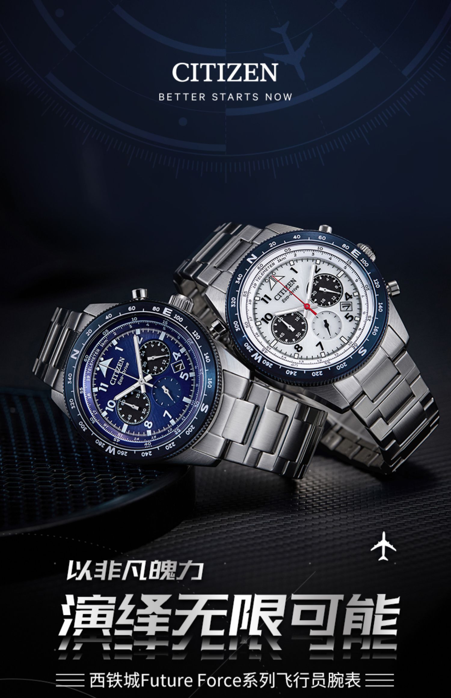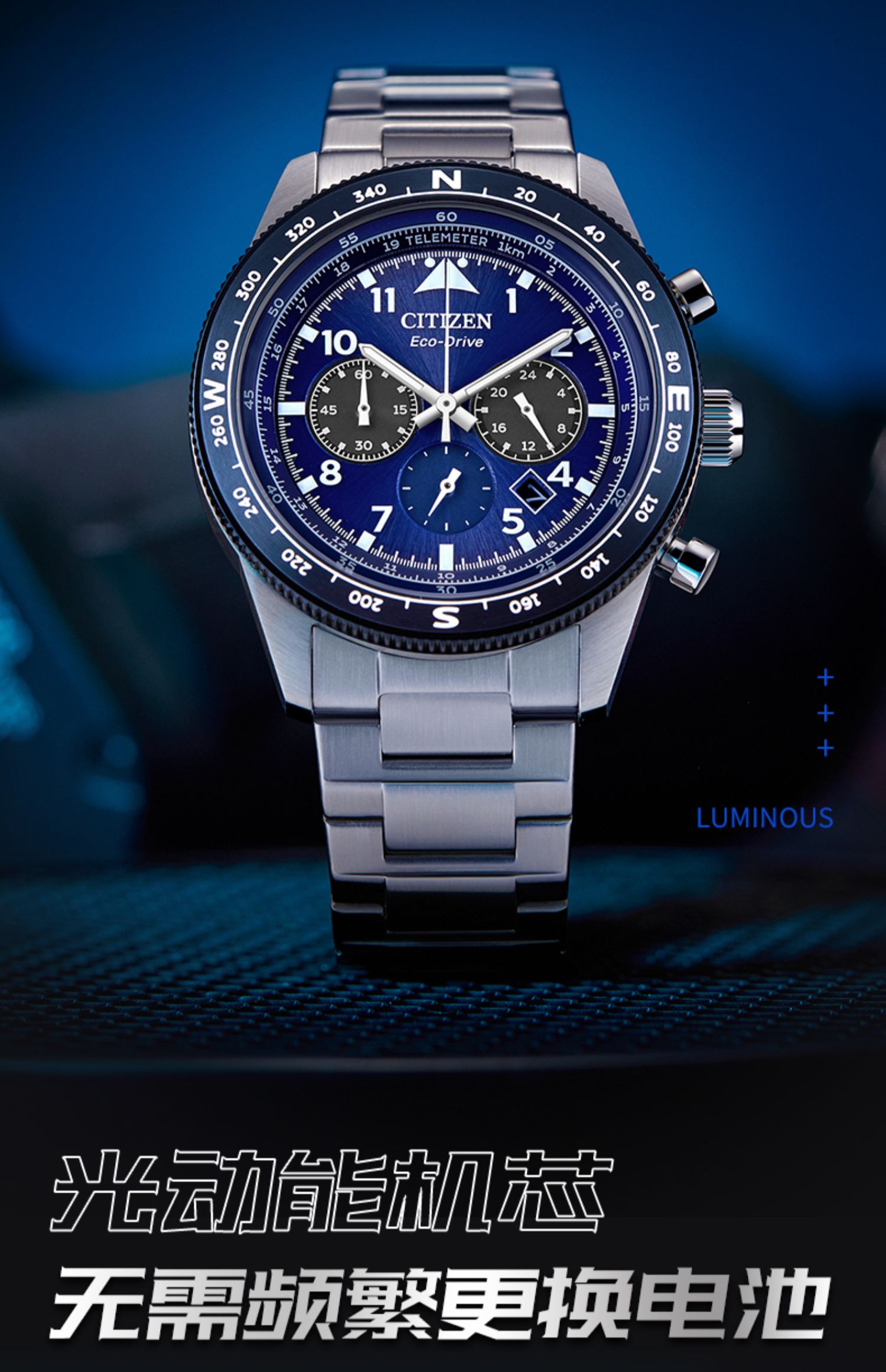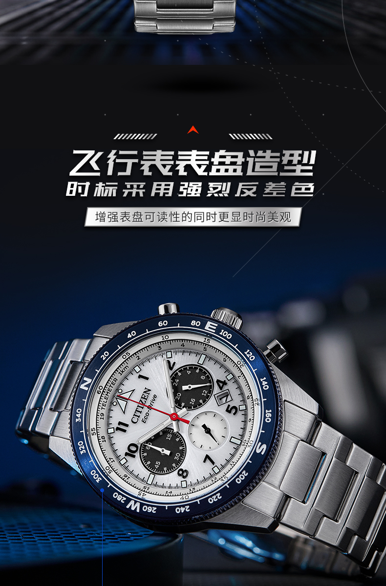 Citizen西铁城 FF系列 光动能手表潮流时尚白盘钢带男表CA4554-84H(单位:块) 白色