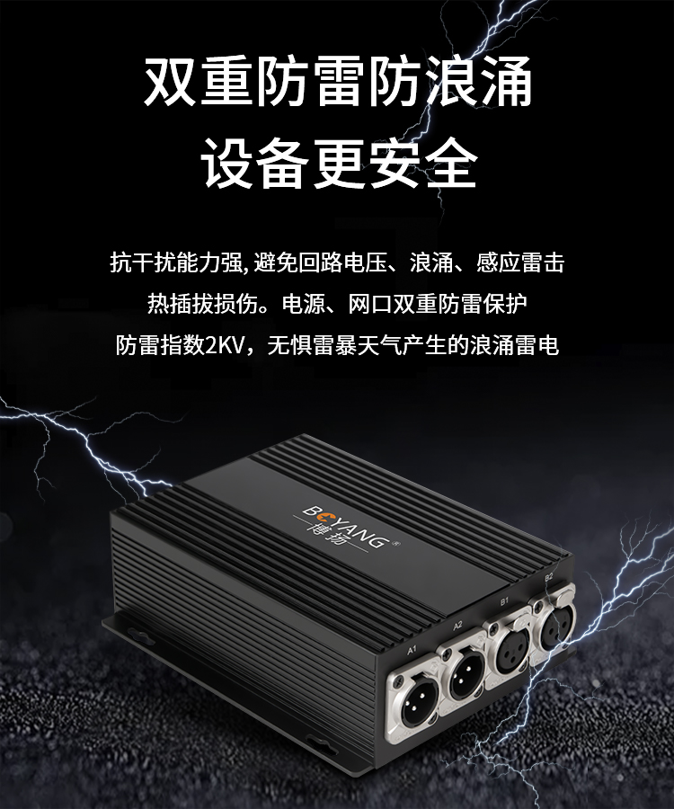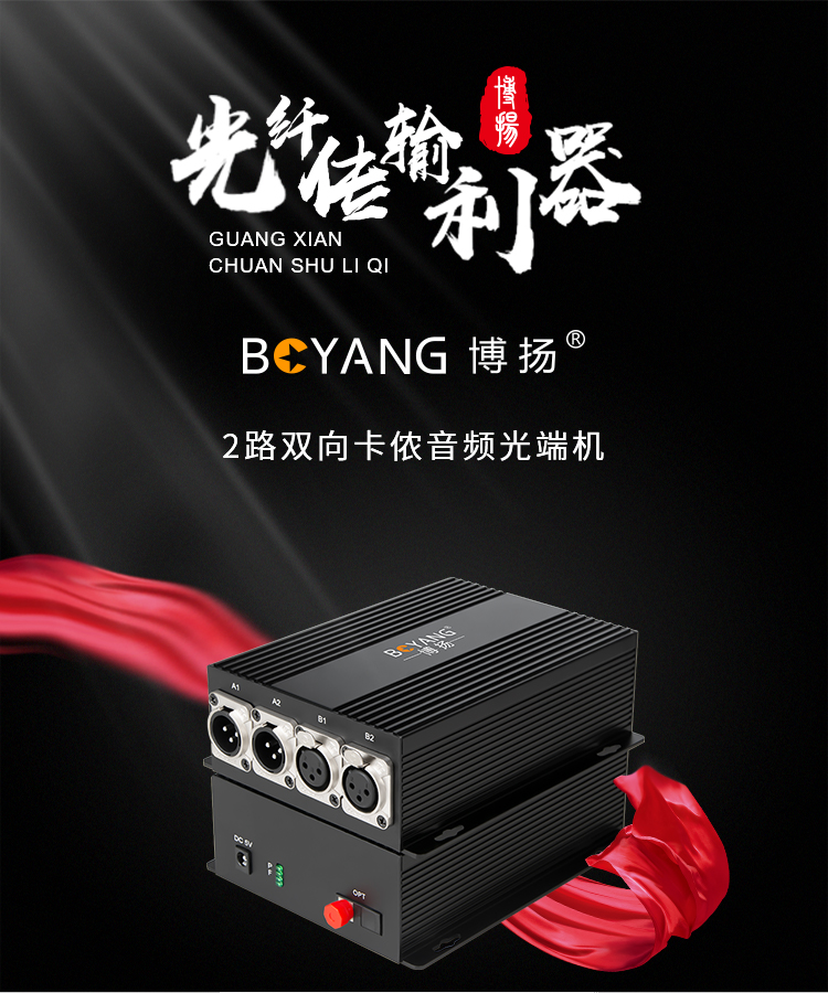 博扬(BOYANG)4路卡侬音频光端机 卡农头平衡音频光纤延长器 2路双向光纤传输器 一对 黑色
