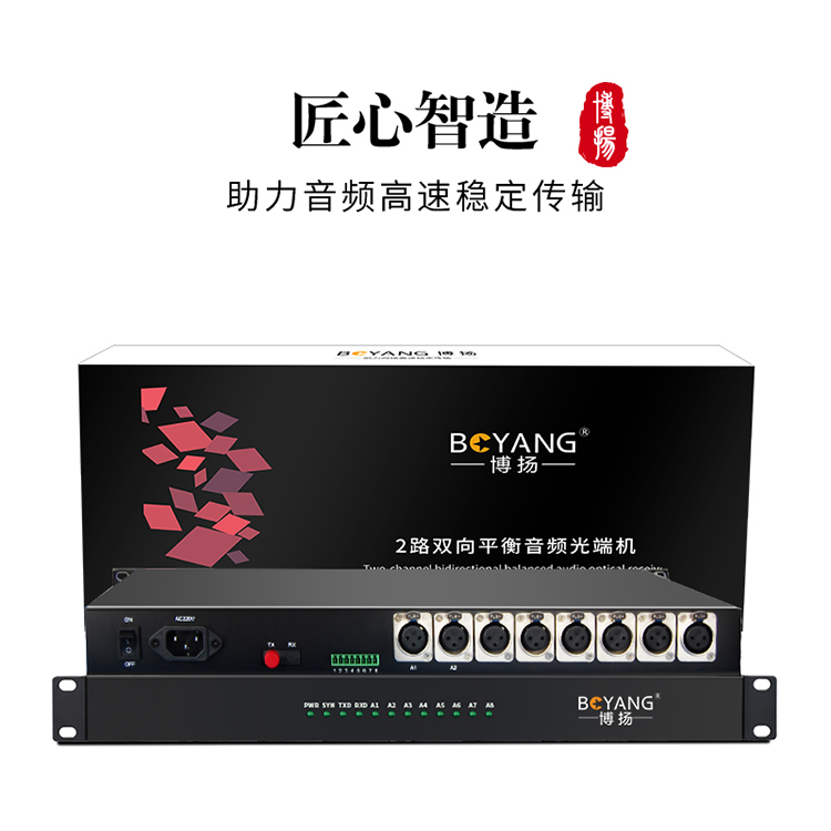 博扬 4路卡侬音频光端机演播广电级 卡农头平衡音频光纤延长器 2路双向光纤传输器 1U机架式一对 黑色