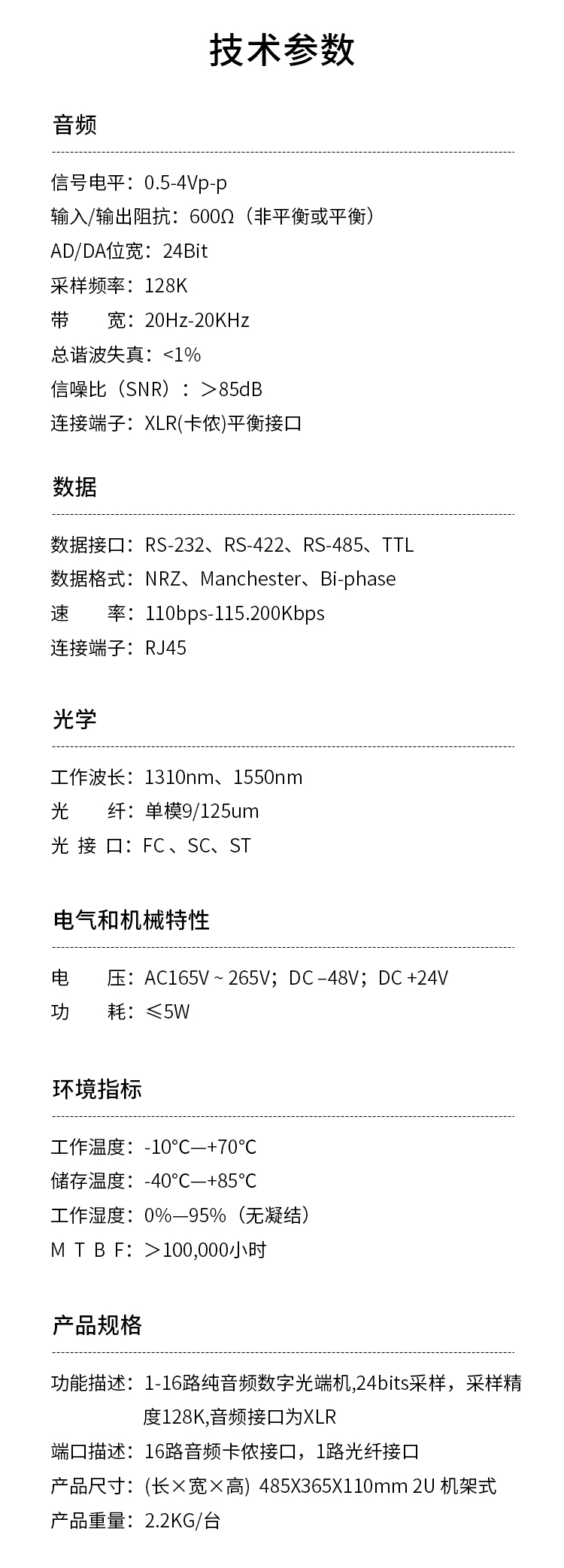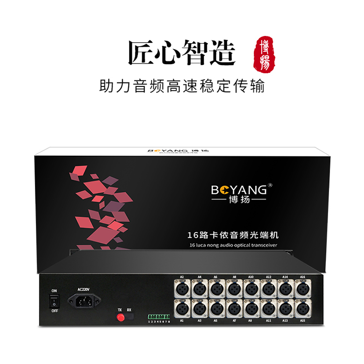 博扬 16路卡侬音频光端机演播广电级 卡农头平衡音频光纤延长器 16路正向光纤传输器 机架式一对 黑色