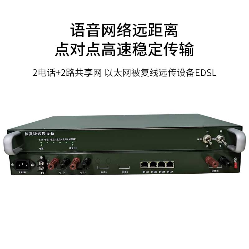 博扬 以太网被复线远传设备EDSL 电话线网桥被覆线远传 2电话+2路共享网 可传输12公里 一台 黑色