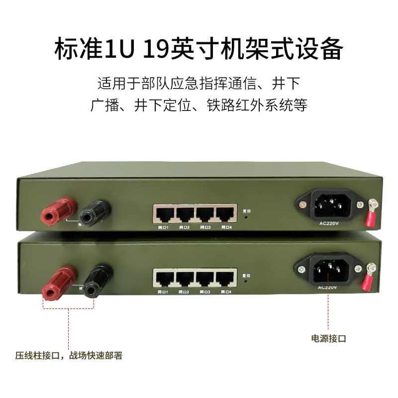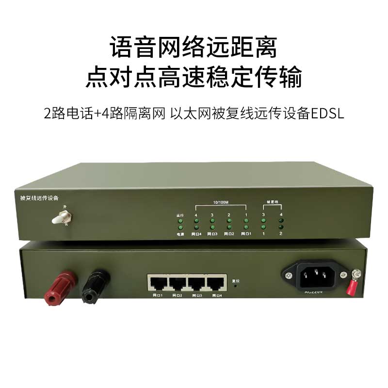 博扬 以太网被复线远传设备EDSL 电话线网桥被覆线远传 2路电话+4路隔离 可传输12公里 一台 黑色