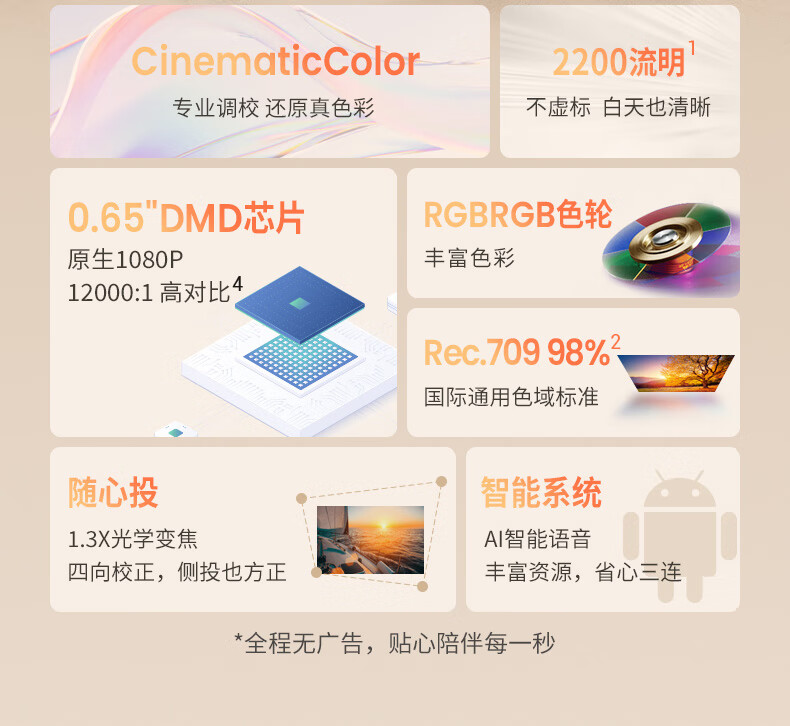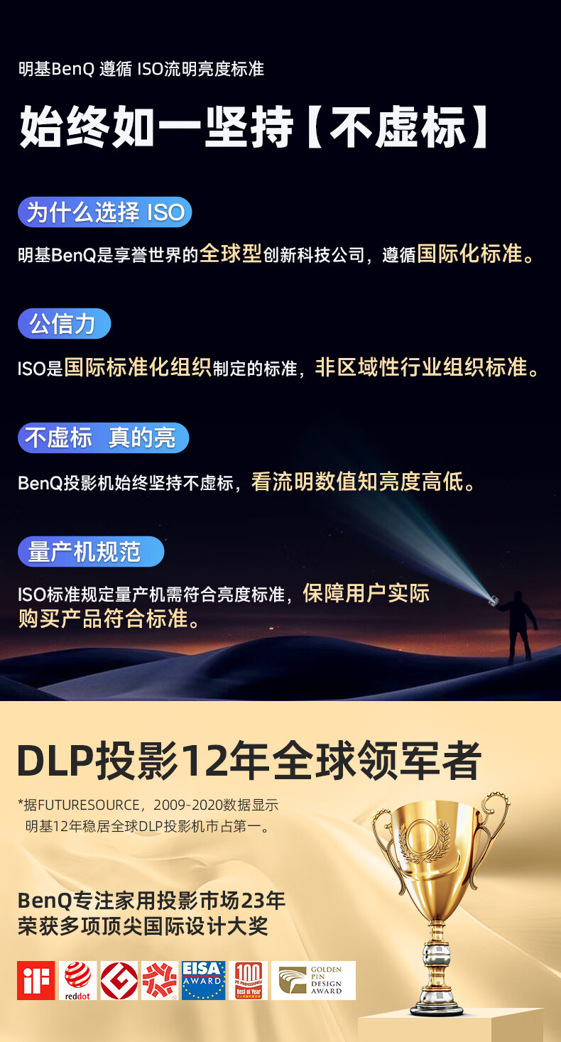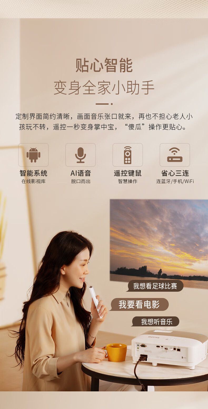 明基(BenQ) i707 家用智能投影仪(0.65DMD 1080P 2200流明) 台 白色