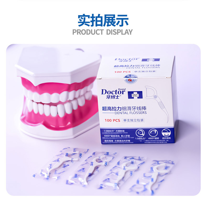 牙博士超高拉力细滑牙线棒100支/盒(单支独立包装)*4 100支/盒*4